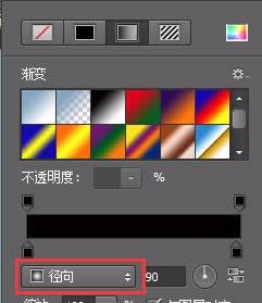 4、复制“椭圆二”图层,把新的图层命名为“椭圆三”,点击左上角的填充,选择渐变填充,此时的渐变模式选择为径向