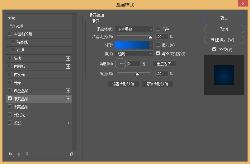 第一步建立背景,新建一个400*300像素的画布,渐变填充#046cfa-#074177