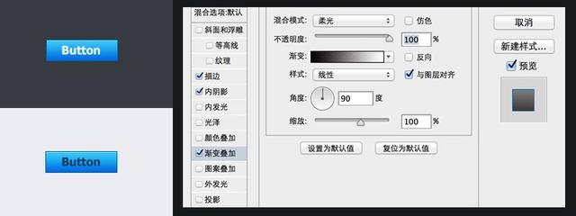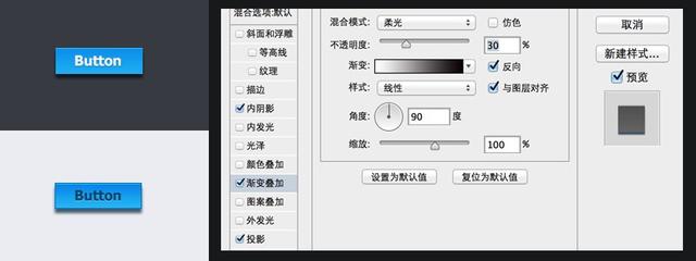 渐变叠加可以让按钮产生更多de的质感效果,多多尝试,会有新的发现。