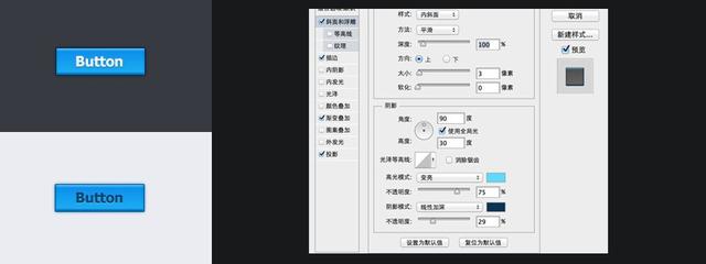 - photoshop制作出黑色高光三维质感按钮