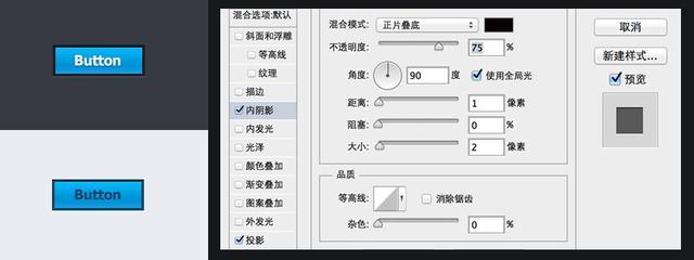 了解了内阴影和投影的使用,就多玩玩1px的威力。它会让你的按钮看起来凹陷感更强烈。