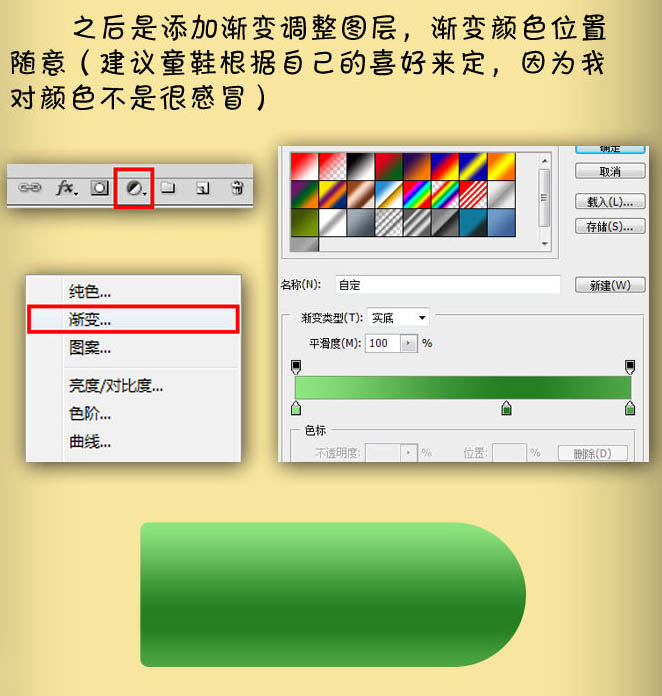 Photoshop使用图形渐变及图层样式制作精致大气的绿色按钮