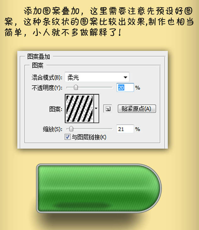 8、添加图案叠加,这里需要注意先预设好图案,这种条纹状的图案比较出效果,制作业相当简单。