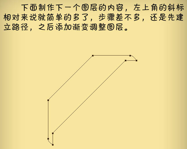 13、下面制作下一个图层的内容,左上角的斜标相对来说就简单的多了,步骤差不多,还是先建立路径,之后添加渐变调整图层。
