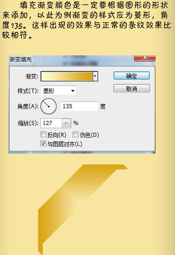 14、填充渐变颜色是一定要根据图形的形状来添加,一次为例,渐变的样式应为菱形,如下图。