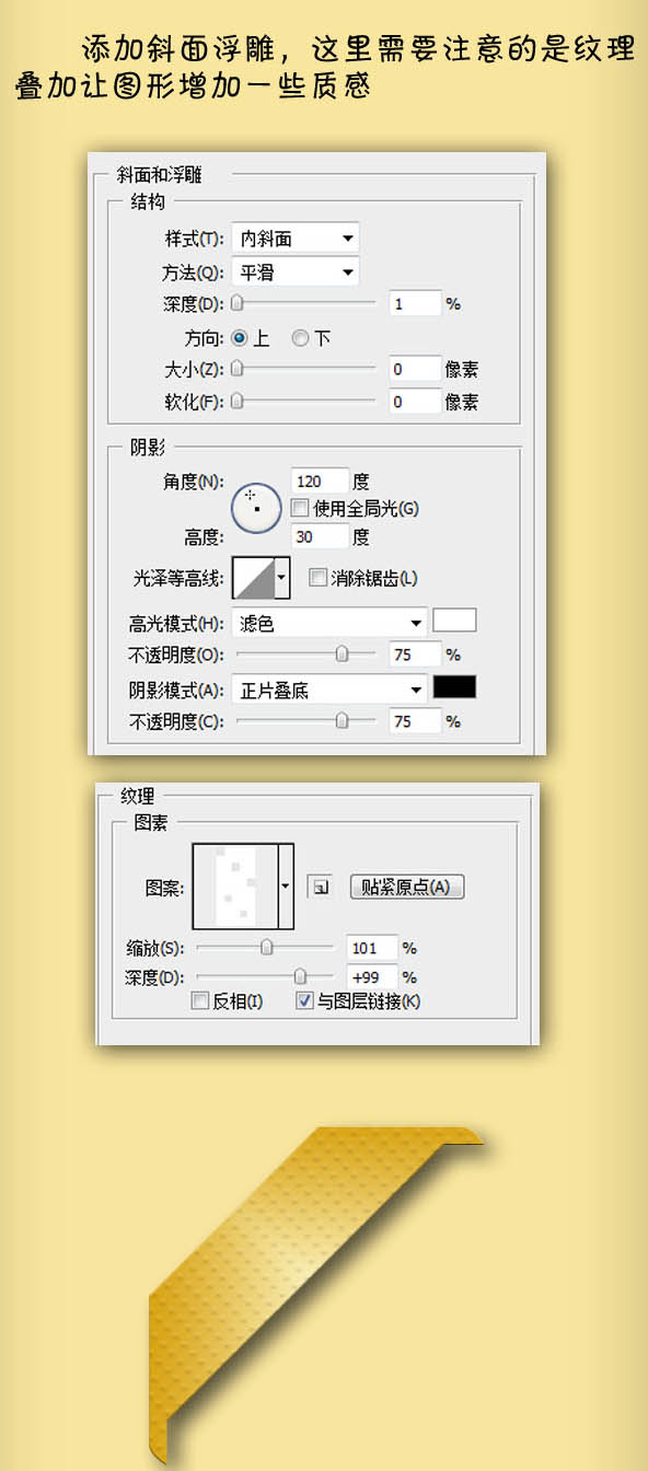 16、添加斜面和浮雕,这里需要注意的是纹理叠加。