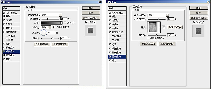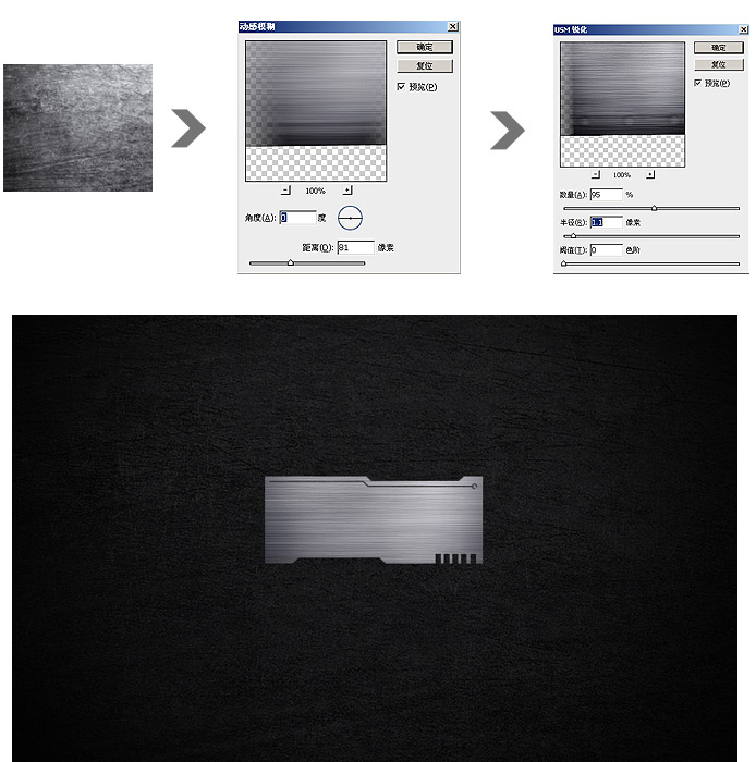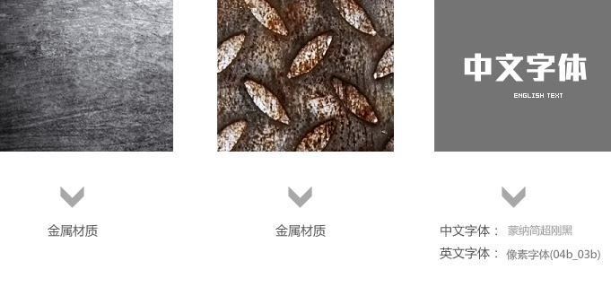 首先,先建一个暗色背景,然后叠加一个金属纹理,调整一下。