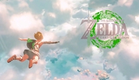 3.在悬崖边,我们会看到空鱼岛留下的瀑布。我们会用滑翔伞飞跃过去,记得穿上佐拉盔甲,然后我们会爬上去。