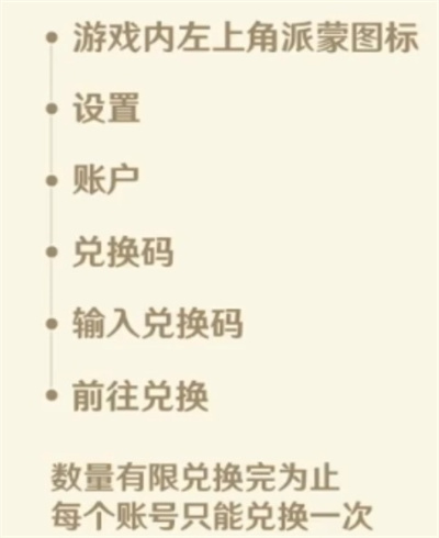 进入游戏大厅-点击Pymont头像-选择设置-账户-:兑换码-输入-点击兑换按钮即可完成兑换。