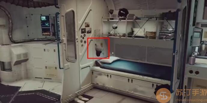 2.进去后,这里有一张床。当你靠近时,你可以通过与它互动来找到它。
