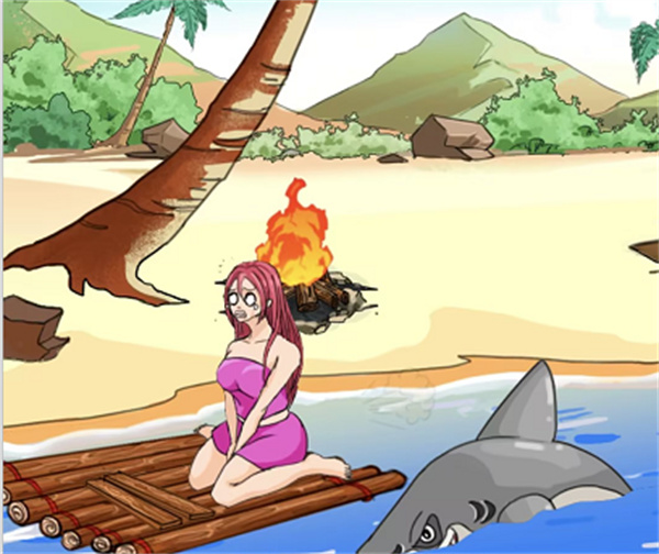 4。上船后,鲨鱼会追着你,把巴豆给美女,然后放屁赶走鲨鱼,从而通关。