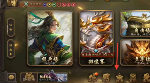 1。第一步,我们需要进入游戏界面,找到底部的特殊选项。
