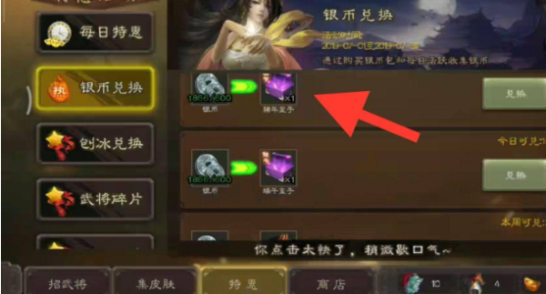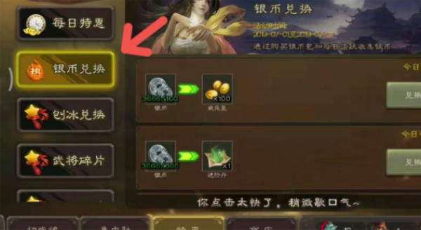 4。接下来,点击银币兑换入口。