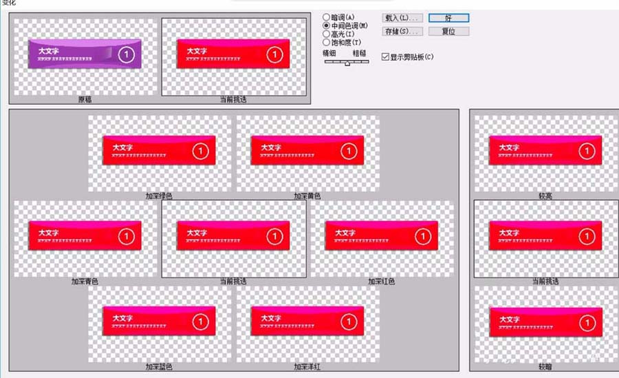 5、这个3D信息图标绘制完成后,我们可以进行不同颜色的感觉体验,首先使用调整工具中的变化,我们可以自由的设置组合,这里,我们制作出了一个红色的3D信息图标。就是不断的加深红色最后形成结果。