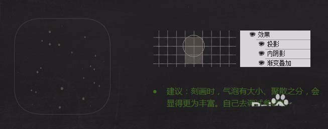 3、建议:刻画时,气泡有大小,聚散之分,会显得更为丰富。自己去调试参数吧。