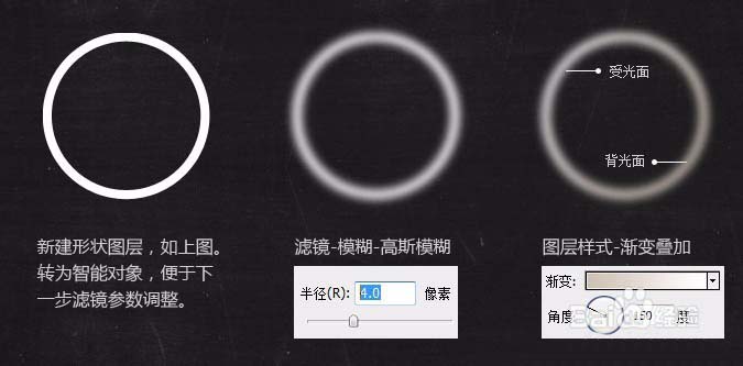 4、波纹制作:新建形状图层,如下图,转为智能对象,便于下一步滤镜参数调整。滤镜-模糊-高斯模糊,图层样式-渐变叠加。