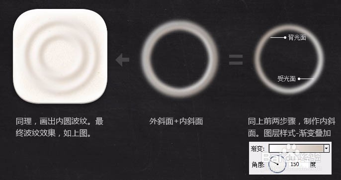 5、同理,画出内圆波纹。最终波纹效果,如下图。外斜面+内斜面,同上前两步骤,制作内斜面。图层样式-渐变叠加。