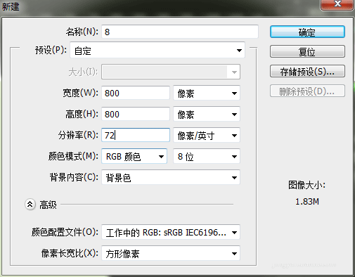 二、新建新画板800*800像素