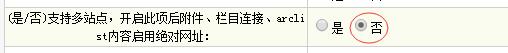 把【(是/否)支持多站点,开启此项后附件、栏目连接、arclist内容启用绝对网址:】选择【否】