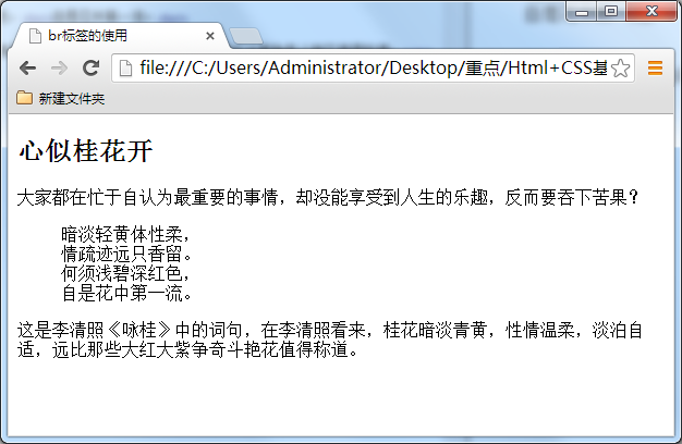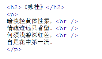 怎么可以让每一句诗词后面加入一个折行呢?那就可以用到<br />标签了,在需要加回车换行的地方加入<br />,<br />标签作用相当于word文档中的回车。
