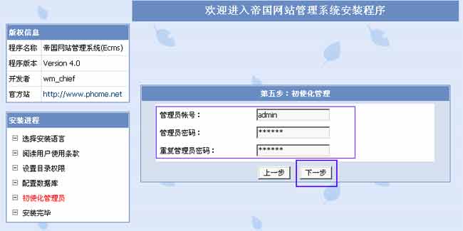 输入你要设置的管理员用户名与密码,然后点下一步。