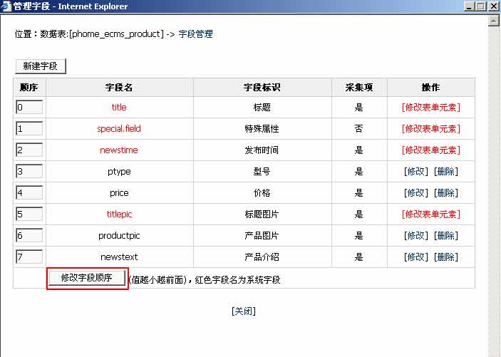 | 位置:登陆后台-》“系统设置”-》“管理数据表”-》“管理字段” | ||||||||||||||||||||||||||||||||||||||||||||||||||||||||||||||||||||||