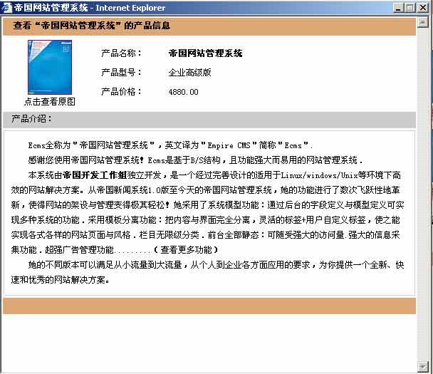 | 通常的产品系统由“产品名称”、“价格”、“型号”、“产品缩略图”、“产品图片”、“产品介绍”等组成。 | ||||||||||||||||||||||||||||||||||||||||||||||||||||||||||||||||||||||