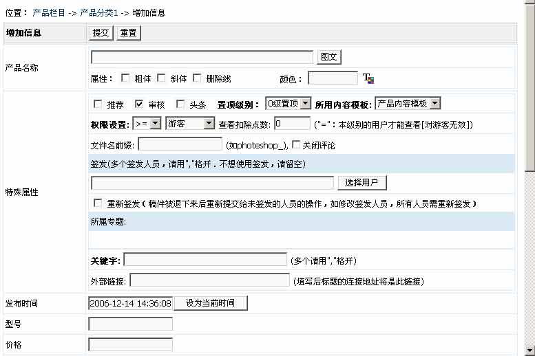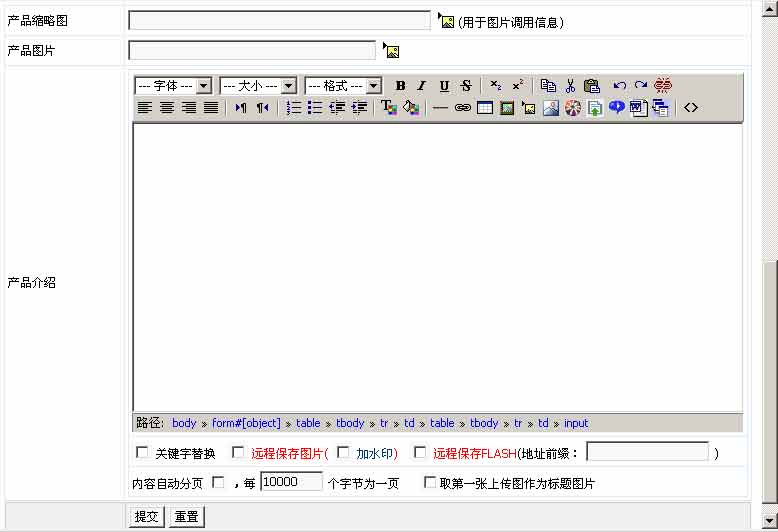 | (二)、这样,增加产品信息时,表单将为如下: | ||||||||||||||||||||||||||||||||||||||||||||||||||||||||||||||||||||||