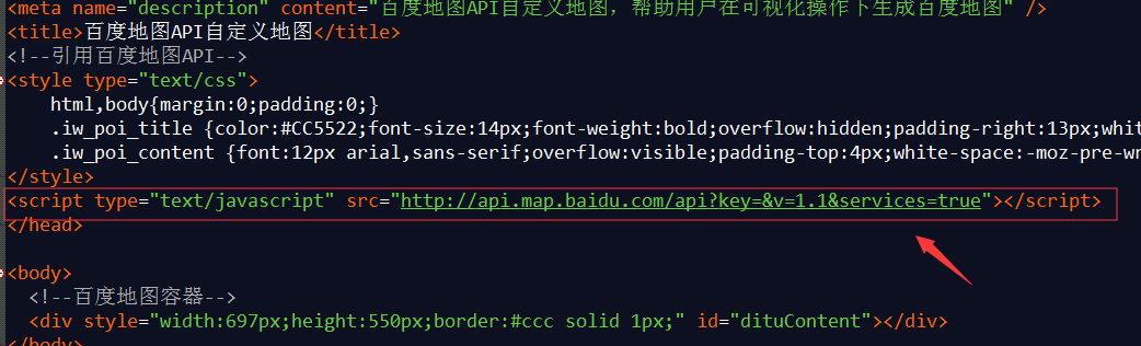 2、百度地图api默认是使用在http协议下,现在很多网站都使用了https证书,那百度地图调用时也要改一下api的协议,把获得的代码中的: