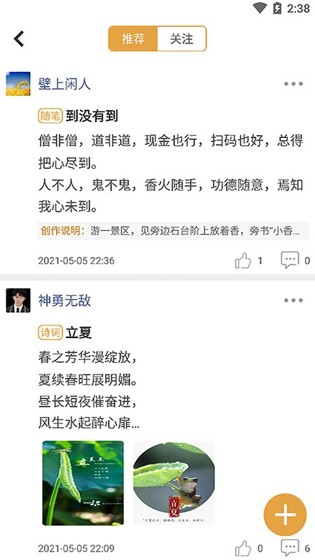 3、诗词鉴赏可以实现粉丝互动、点赞评论、关注收藏、发布诗歌等。如果你也希望你的诗能被诗友知道,那么欢迎你来写诗。如果你喜欢读别人的诗,也欢迎你来这里欣赏。