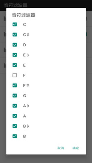 + 调音器类别、滤波器选项包括低通、基音、乐谱和八度小音阶滤波器