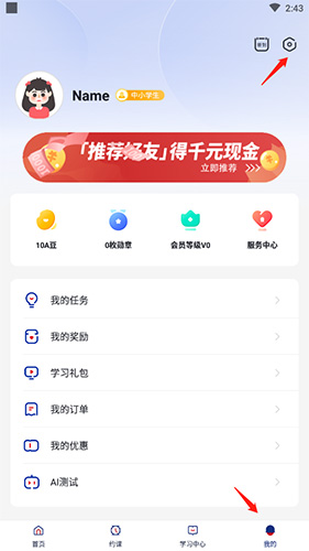 1、打开软件,点击底部“我的”选项,然后点击右上角“设置”按钮。