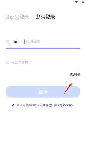 1.打开软件,进入登录页面,点击“忘记密码”选项。