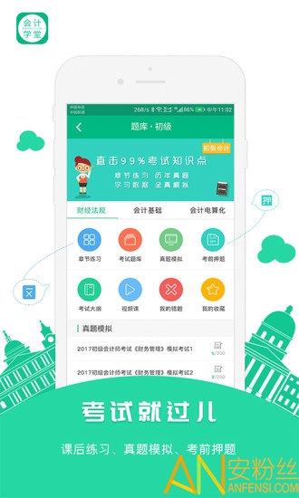 可视化离线题库、会计资格证书考试要点、章节练习;日常练习,真题模拟,智能可视化分析,薄弱点专用题库。