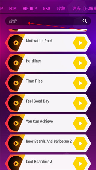 1.下载并进入节奏弹球游戏,可以看到游戏中有大量的歌曲;