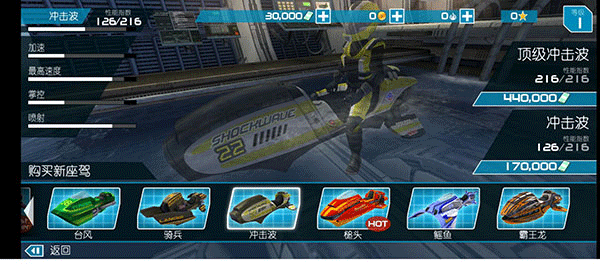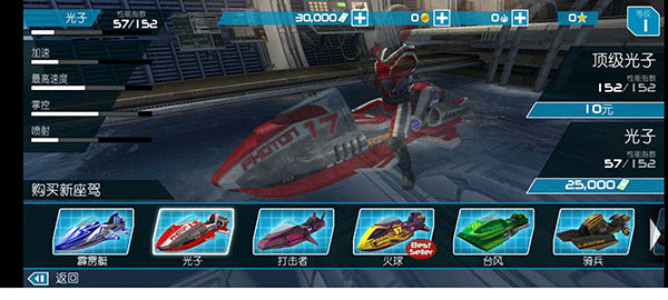4.速度:不断提高你的摩托艇的速度,以更快地到达终点线。通过提高速度,您可以更快地赢得比赛。