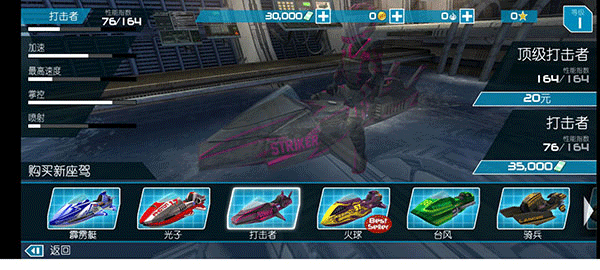 2、节奏:非常紧凑刺激的快节奏摩托艇竞速冒险游戏体验让玩家爱不释手,享受快节奏的竞速;