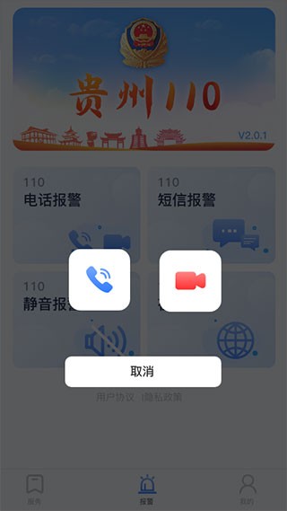 用户在贵州110APP上可以选择多种报警方式,包括电话报警、短信报警、无声报警、在线报警等。