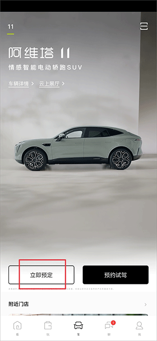 1.打开Avita Car应用程序,然后在汽车界面中单击立即预订