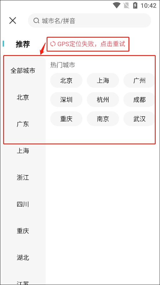 2.如果您的手机定位失败,也可以手动输入。