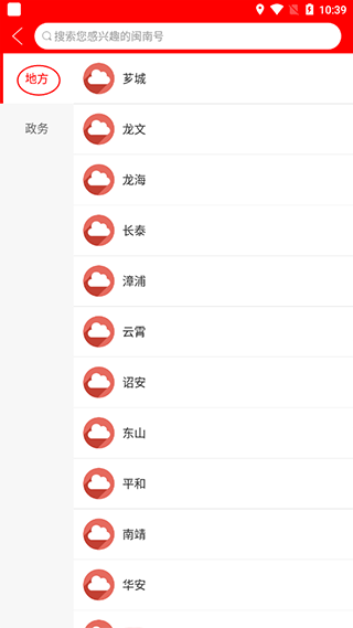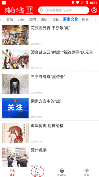 1.打开闽南云新闻APP,选择“闽南号”,里面有闽南各地的信息。