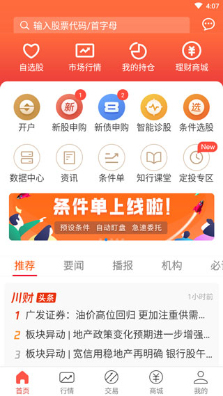2、行情更新及时全面:沪深港股、期货、基金等市场行情更新迅速。立即获取市场动态,实时掌握市场动向,为投资决策提供有力支持。