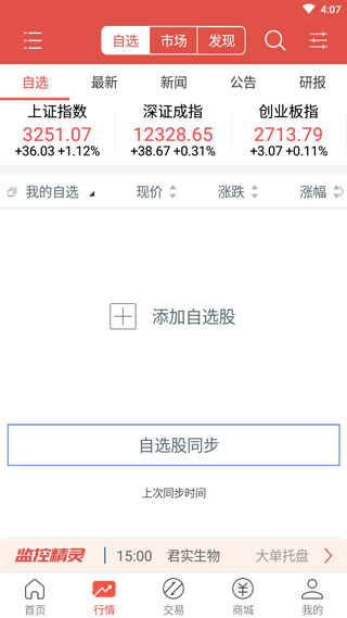 3、自选同步方便省心:自选股票可上传同步至云端。即使更换设备,您也可以轻松同步选股,随时随地继续关注您喜欢的股票。