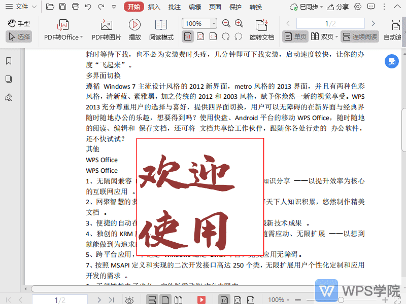 使用WPS Office打开PDF文件,插入文本框注释内容后。