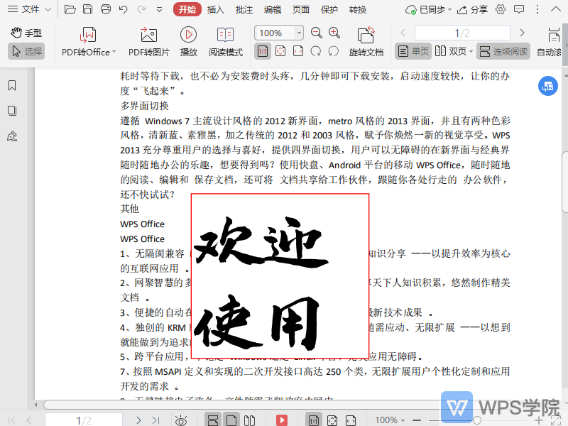 使用WPS Office打开PDF文件,插入文本框注释内容后。