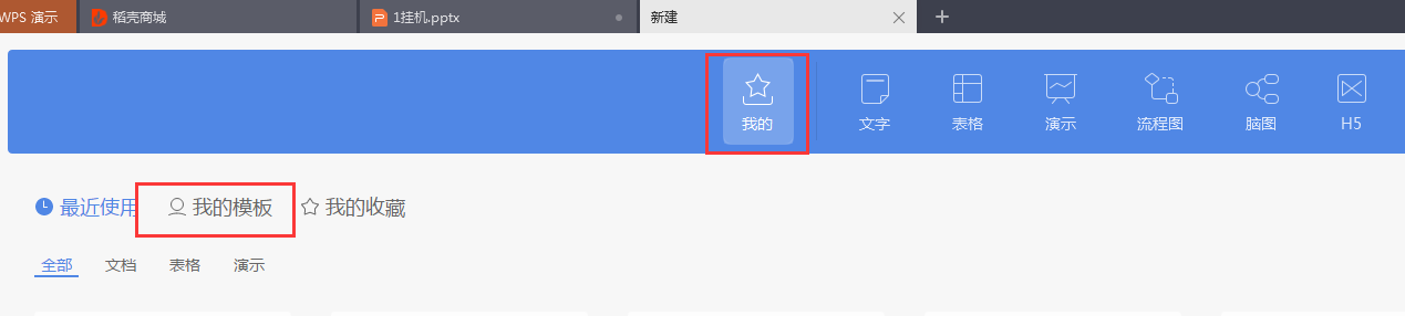 2、点击“新建”--->“我的”--->“我的模板”新建即可。