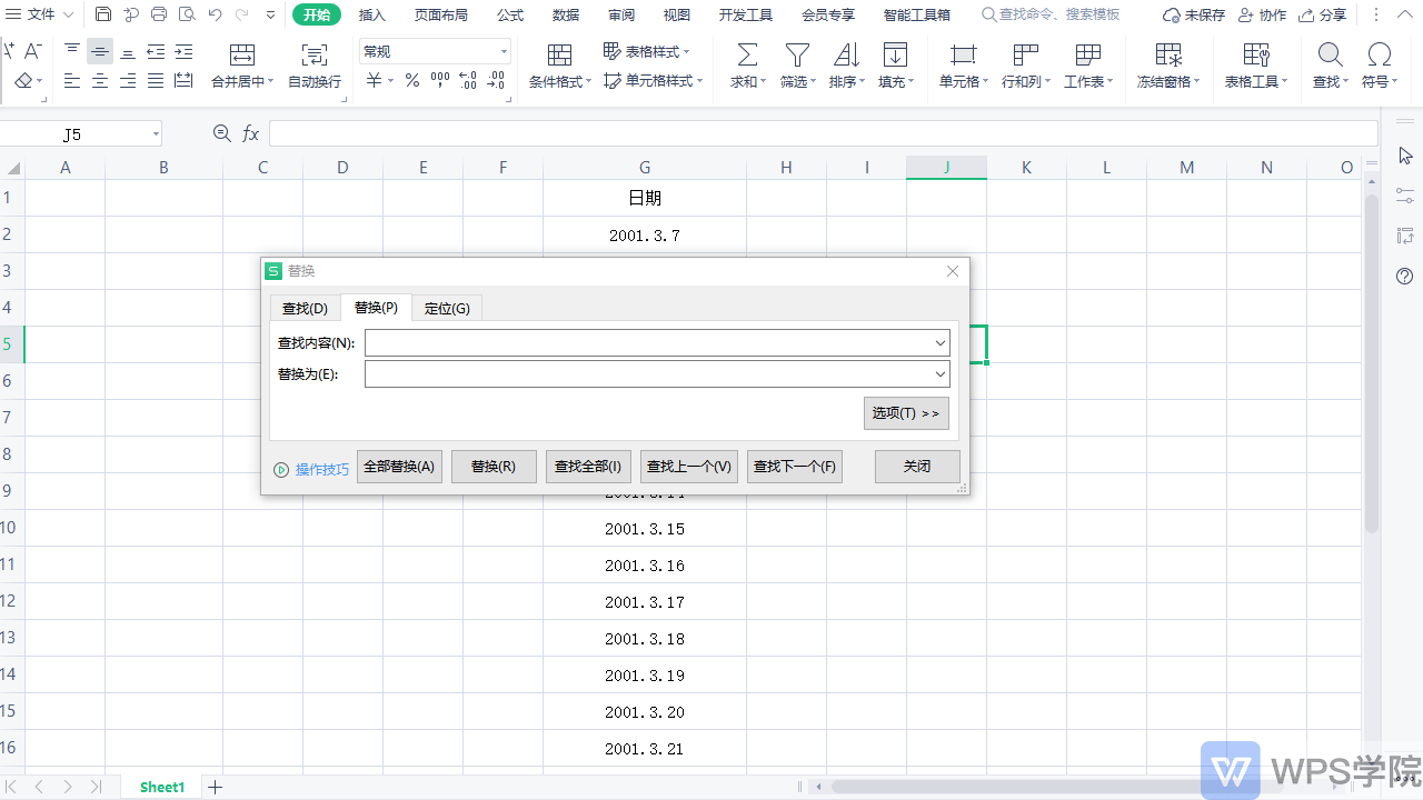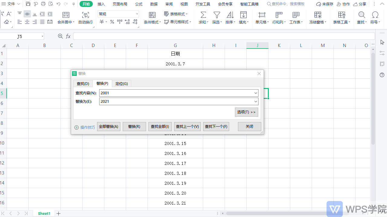 第二步:在「查找内容」栏中输入被替换的年份,如2001,在「替换为」栏中输入替换的年份,如2021。
