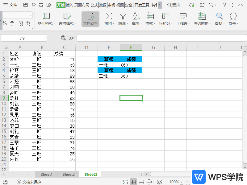 使用WPS Office打开表格,依次点击“开始”--->“筛选”右下角箭头符号--->“高级筛选”即可。