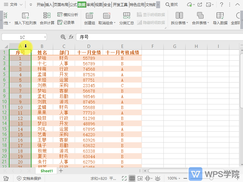 使用WPS Office打开表格,选中需要折叠的行列,依次点击“数据”--->“创建组”。