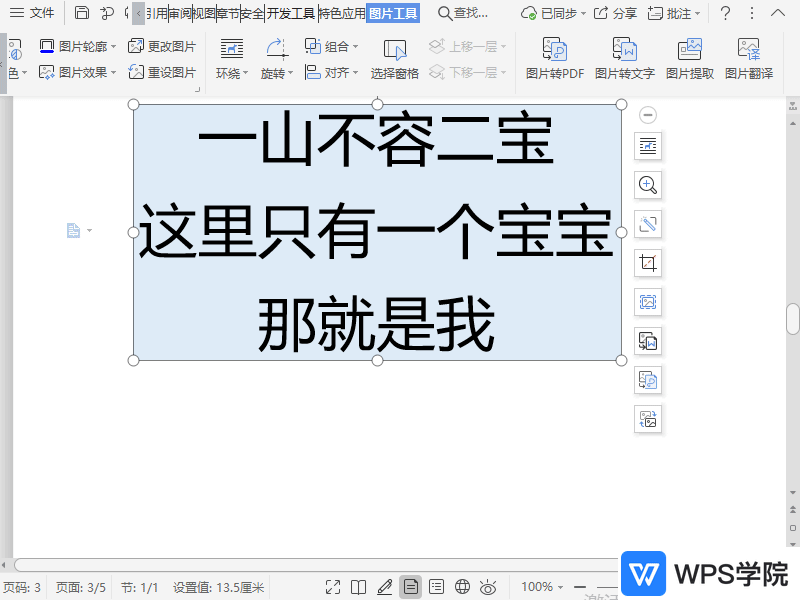 使用WPS Office打开文档,选择需要转换的图片,在“图片工具”中点击“图片转文字”。